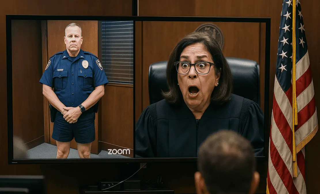 In a courtroom moment that no one saw coming (well, until they did), Detroit Police Officer Matthew Jackson showed up to his virtual hearing wearing his full police uniform… from the waist up.